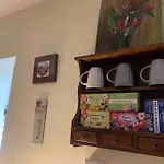 Här finns mathörna med köksutrustning, såsom ugn.